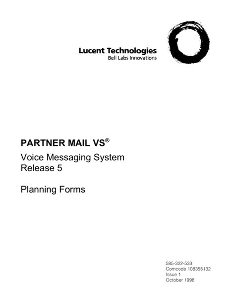 Read PARTNER MAIL VS Voice Messaging System Release 5 Installation ... Doc Gutenberg